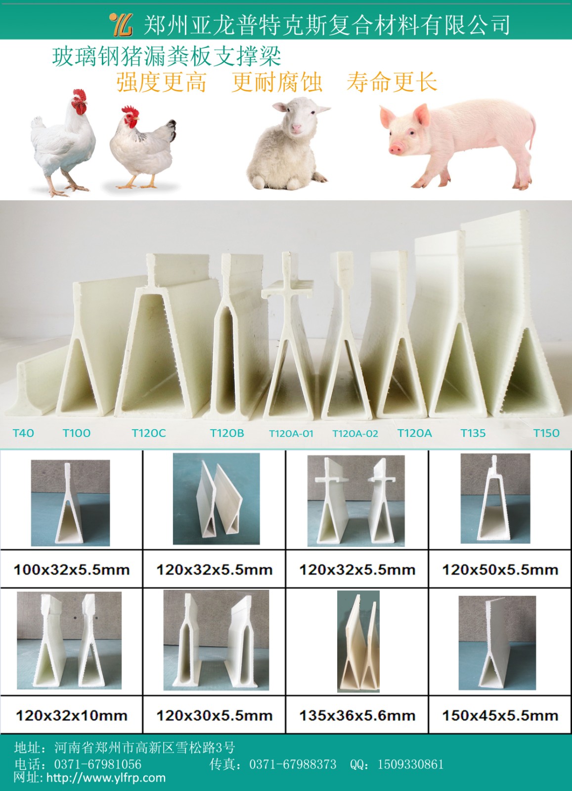 玻璃鋼支撐梁廣泛用于豬舍,雞舍,羊舍漏糞地板的支撐,具有耐酸堿腐蝕,強(qiáng)度高質(zhì)量輕,便于安裝的特點(diǎn)